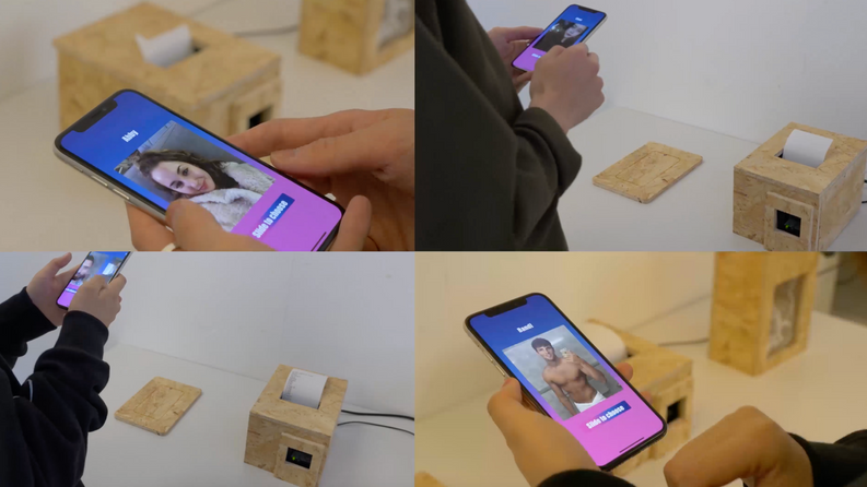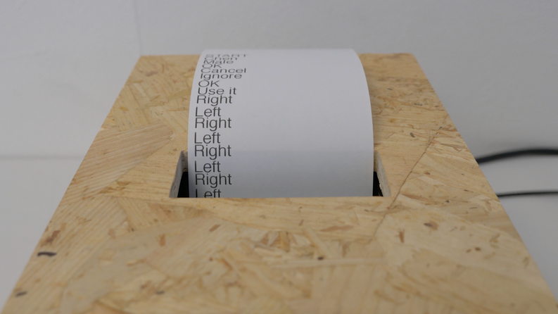 I use a simulated social application to record audiences' network behaviour data, and after processing, data will be printed. Let the audiences feel oneself, in the form of a simple choice can affect a range of data in the network change, and using the slow mechanical process to high- light that the network data processing only takes place in one moment.